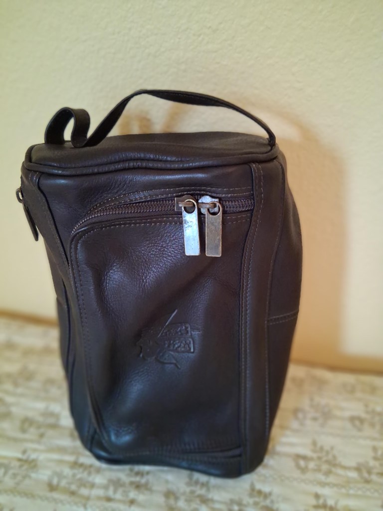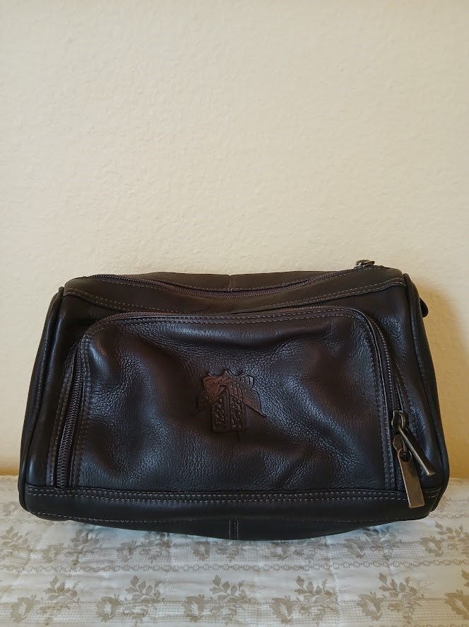 Winston Collection Toiletry Bag in Colombian Leather perfect gift for the traveling golfer -Soft Colombian leather -4 Classic Colors. Black, Cafe, Distressed Brown or Tan -Stylish, convenient, and durable -Great for traveling and keeping your bathroom essentials organized -Easy carry leather strap -Deep inner pocket for all your items -Smaller facing pocket to keep things separated -Quick drying fabric interior lining -9.5" x 4.5" x 5.5"